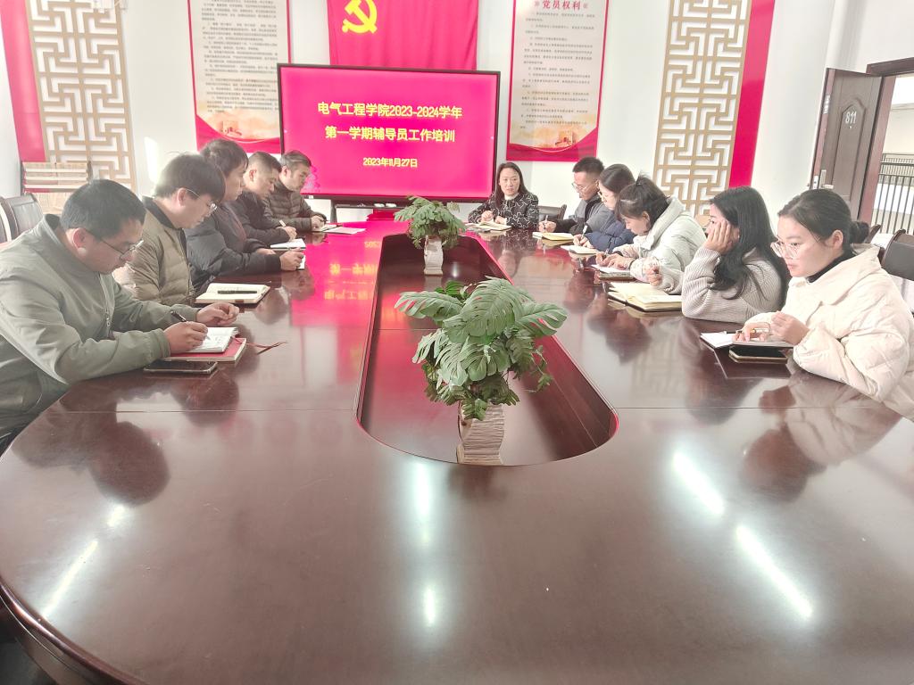 2023年11月27日9时,电气工程学院党总支书记江铃组织全体辅导员开展辅导员业务培训,本次培训主要围绕辅导员工作规范这一主题开展。副院长彭海涛主持本次培训会。