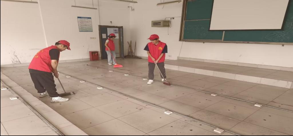 活动中,同学们身着红马甲,手拿清洁工具,对教室内的各个角落进行了全面清扫。他们清理了垃圾,擦拭了教室和走廊的墙壁,整理了同学们遗落在教室的物品,使得教室环境焕然一新。