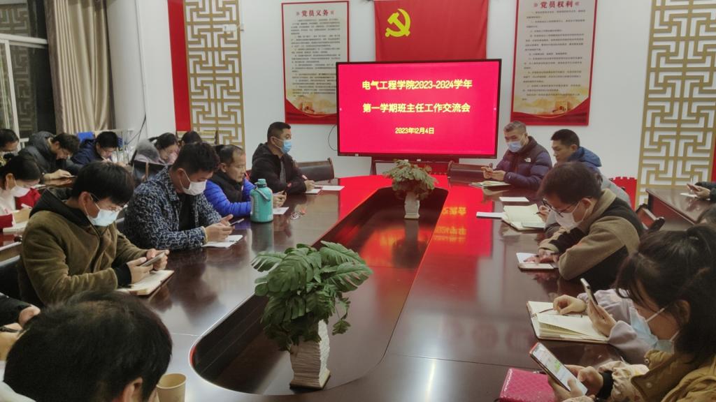 为进一步强化辅导员和班主任队伍建设,提高辅导员、班主任教育管理工作水平,电气工程学院于12月4日,在3号811教室举行班主任工作交流会,由学生工作副院长彭海涛主持、辅导员及全体班主任参加了此次交流会。交流会主要就班级管理工作中好的经验、成功做法、亮点进行交流和探讨。