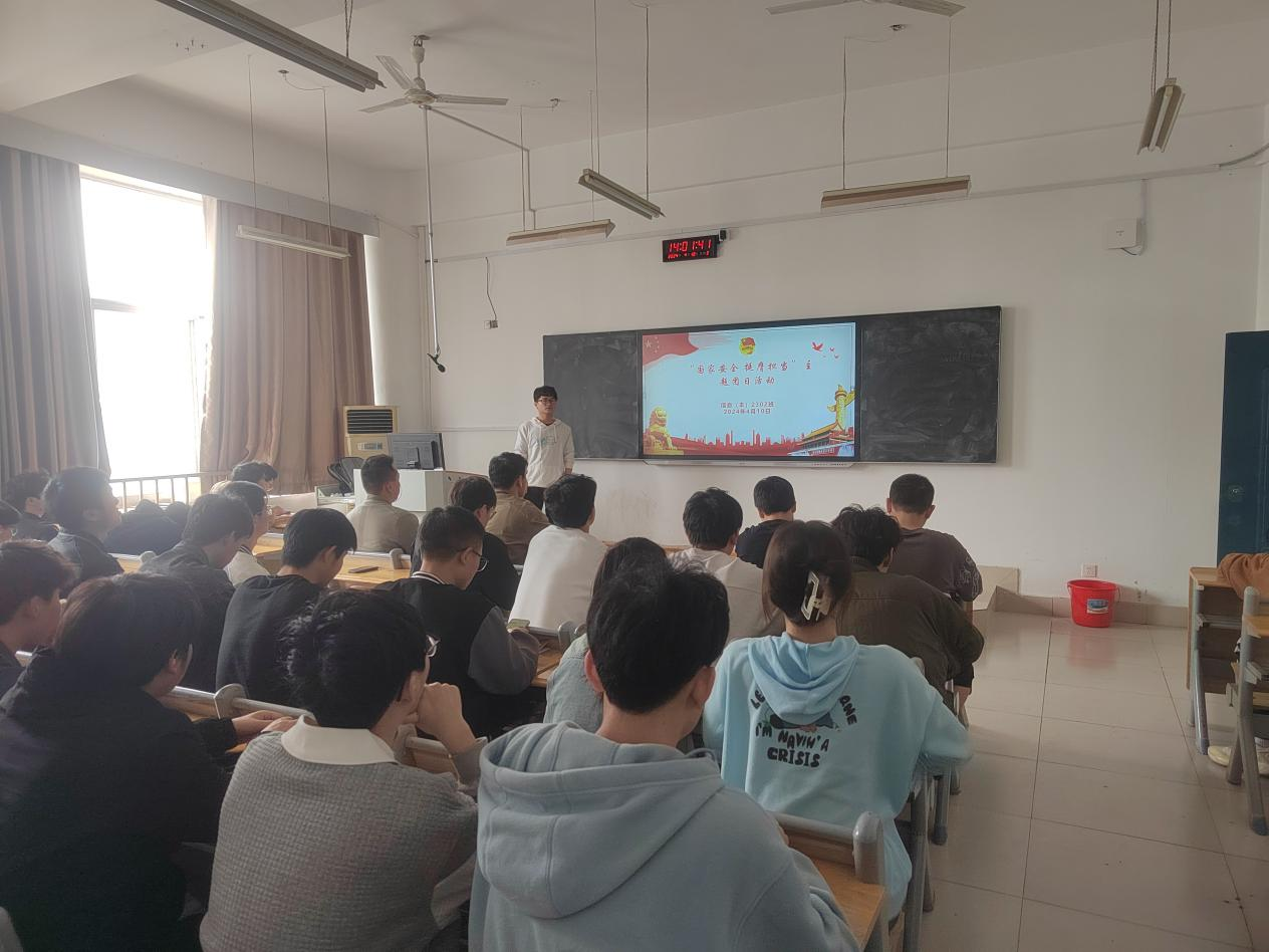 九江职院新闻网讯(电气工程学院 刘奕瑶) 4月9日至4月14日,电气工程学院在十里校区3号教学楼各班教室开展“国家安全 挺膺担当”主题团日活动,该院大一、大二各团支部积极参加。