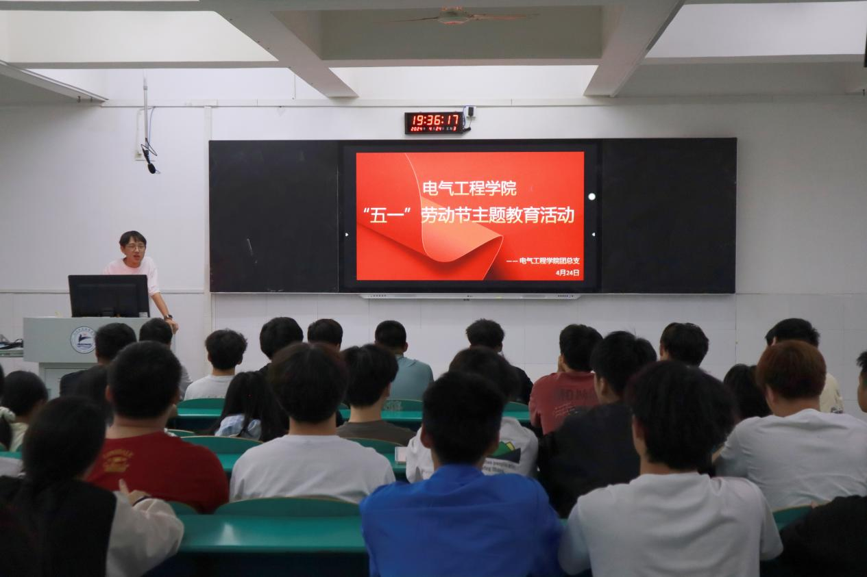 九江职院新闻网讯(电气工程学院 刘奕瑶)4月24日19时30分,电气工程学院在十里校区3号教学楼800教室开展“五一”劳动节主题教育活动,该院80余名学生代表参加。