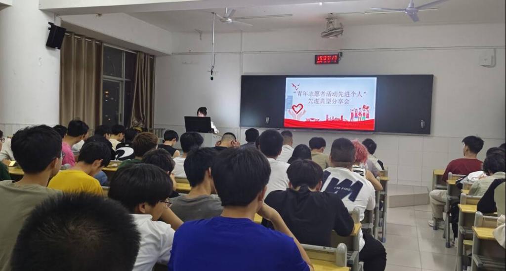 九江职院新闻网讯(电气工程学院 刘奕瑶)5月12日19时30分,电气工程学院在十里校区3号教学楼506教室开展青年志愿者先进个人分享活动,来自该院各班级的60余名同学参加。