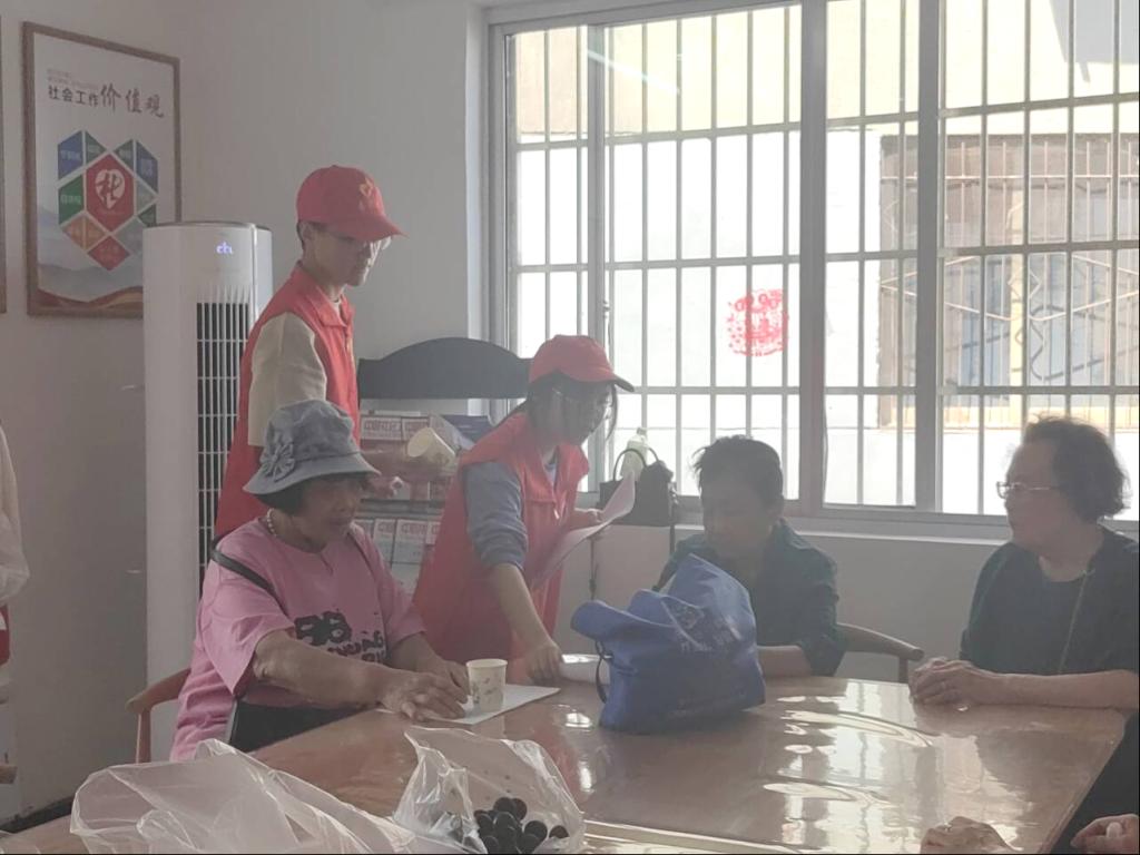 活动中,志愿者们陪伴老人聊天,与社工站的工作人员一起为老人制作餐食,整理和打扫了用餐区域的卫生,还与老人们一起组织了锻炼手眼协调能力的小游戏,丰富老人们的生活。志愿者们的热情服务和关爱,让老人们感受到社会的温暖和关怀,并对志愿者们表达了真诚的感谢。
