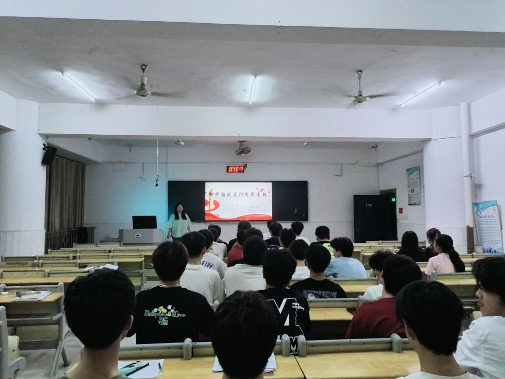 九江职院新闻网讯(电气工程学院 王升)5月20日19时30分,电气工程学院在十里校区3教507教室开展 “庆祝新中国成立75周年”主题团课,该院学生辅导员刘奕瑶主讲,各团支部代表40余人参加学习。