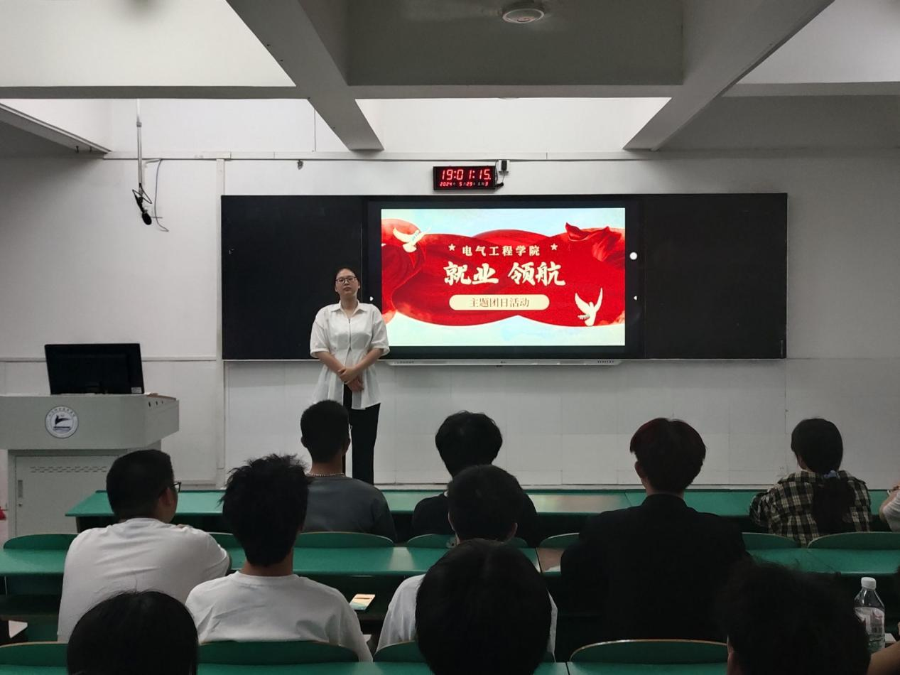 九江职院新闻网讯(电气工程学院 刘奕瑶)5月26日至5月30日,电气工程学院在十里校区3号教学楼各班晚自习教室开展“就业引航”主题团日活动。