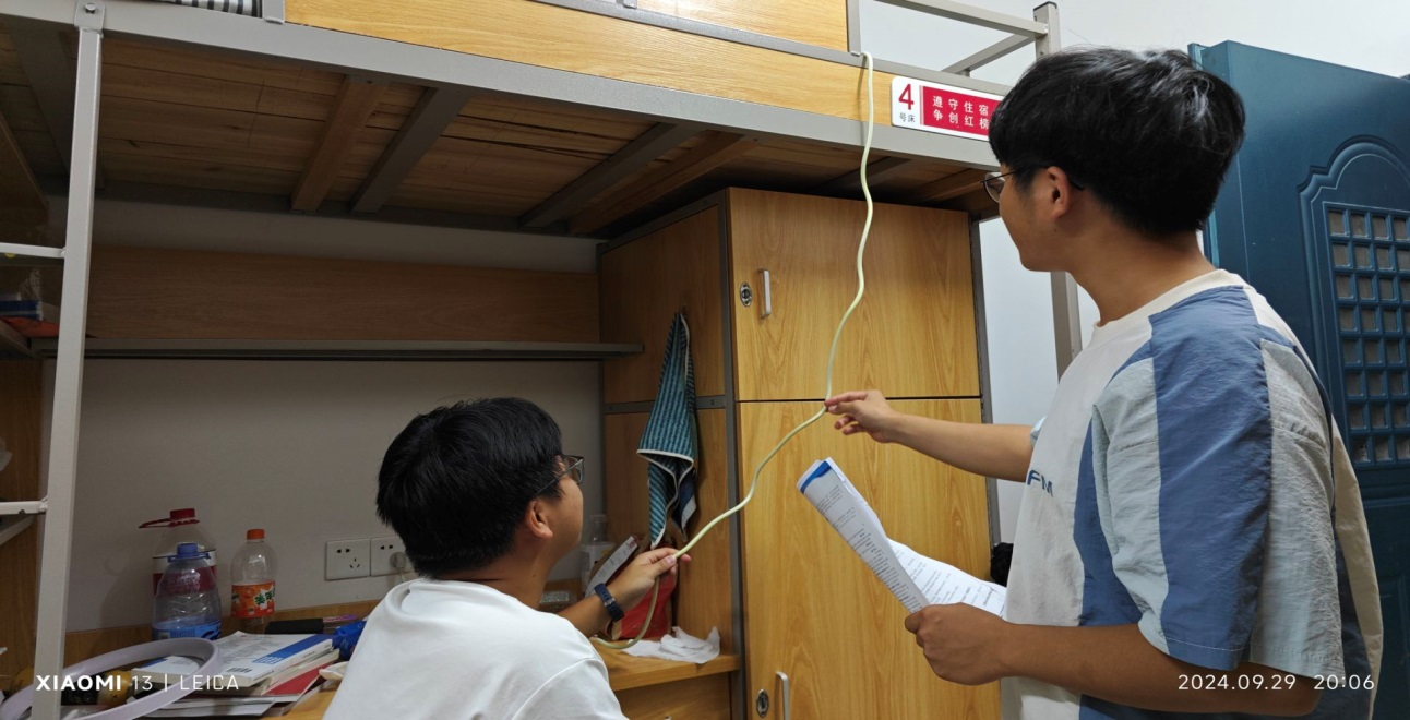 活动中,部门成员们分为两组,深入不同楼栋进行宿舍用电安全与宿舍消防安全检查宣传。全体人员为同学们仔细排查宿舍用电安全隐患,宣讲安全用电知识,并对楼道消防设施进行了检查并记录。大家以认真仔细的工作态度为同学们提供了细致全面的服务,获得了同学们的一致好评与感谢。