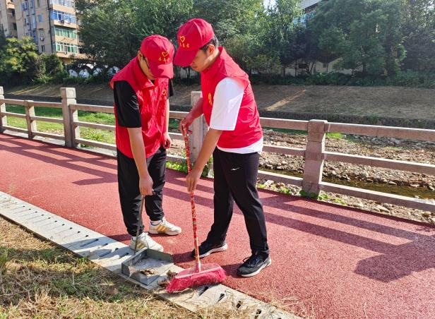 同学们走出校门,开展“青春志愿行,国庆献爱心”志愿服务,“河小青”们来到十里河沿岸,用实际行动爱护环境,为构建和谐社会贡献自己的力量。志愿服务不仅增强了同学们的社会责任感,也让他们在实践中更加深刻地理解了“爱国”二字的含义。