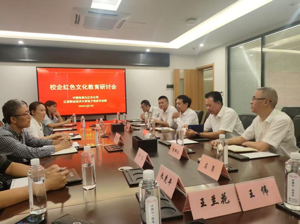 本网讯(电气工程学院、信息工程学院)10月14日,江西职业技术大学电子信息工程技术专业群与中国电信九江分公司政企客户部联合开展“纪念中国人民抗日战争暨世界反法西斯战争胜利80周年”主题党日活动,电气工程学院党总支、信息工程学院党总支及九江电信政企党支部党员代表参加。
