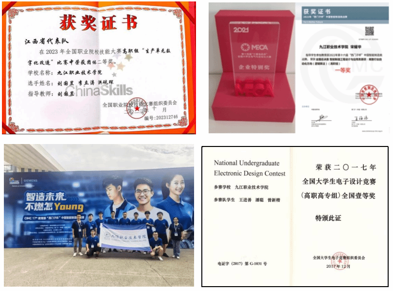 3. “西门子杯”中国智能挑战赛:第十六届高职组一等奖1项;第十七届高职组一等奖1项,本科组一等奖1项、二等奖1项;